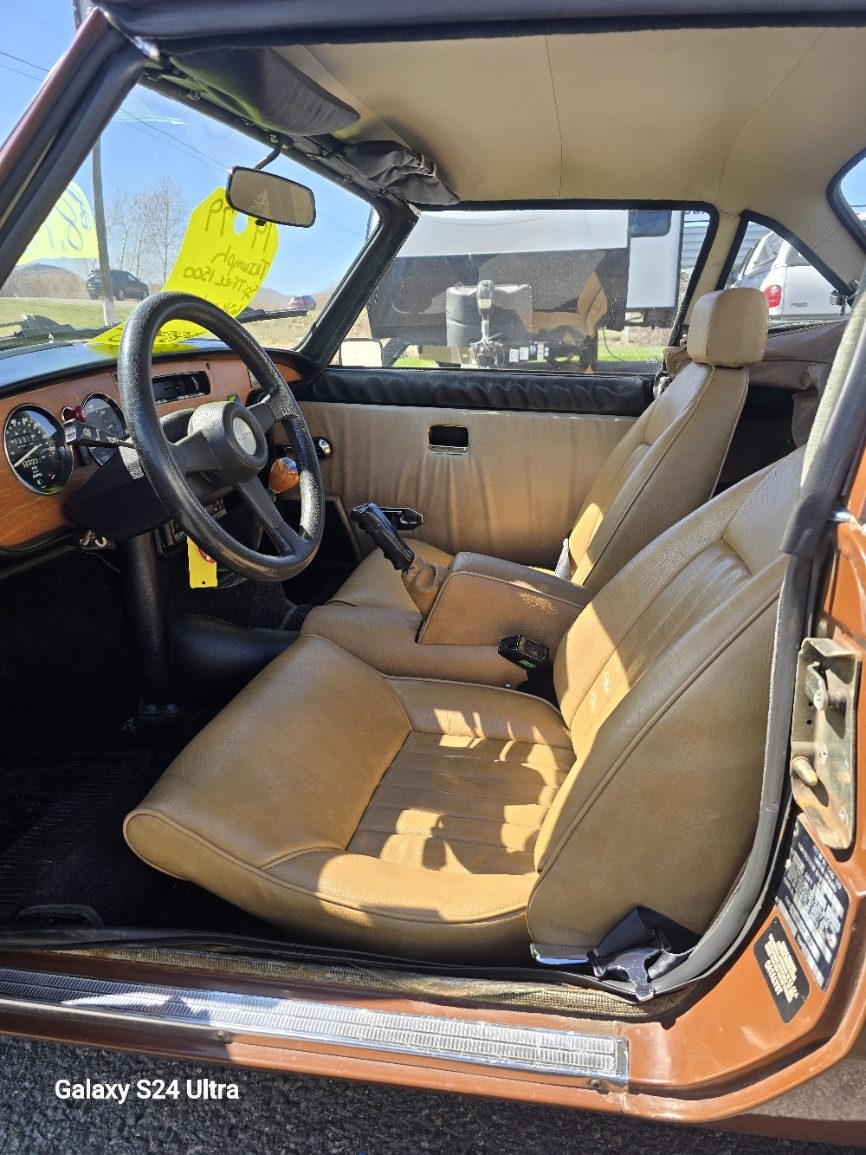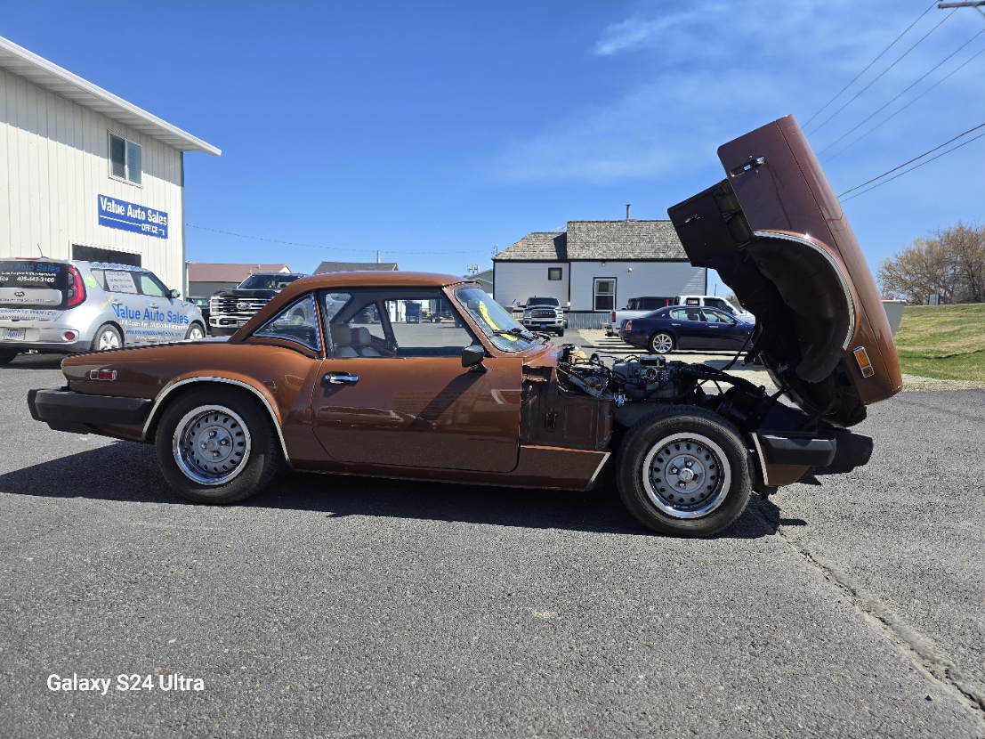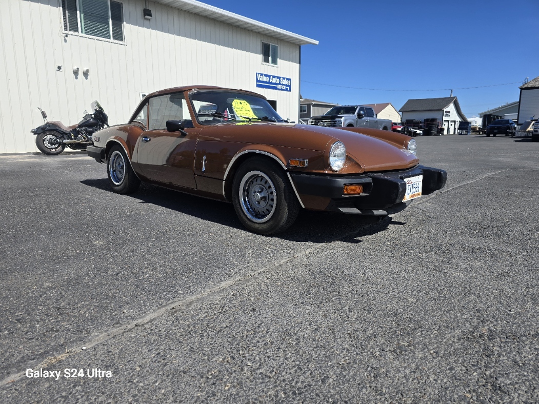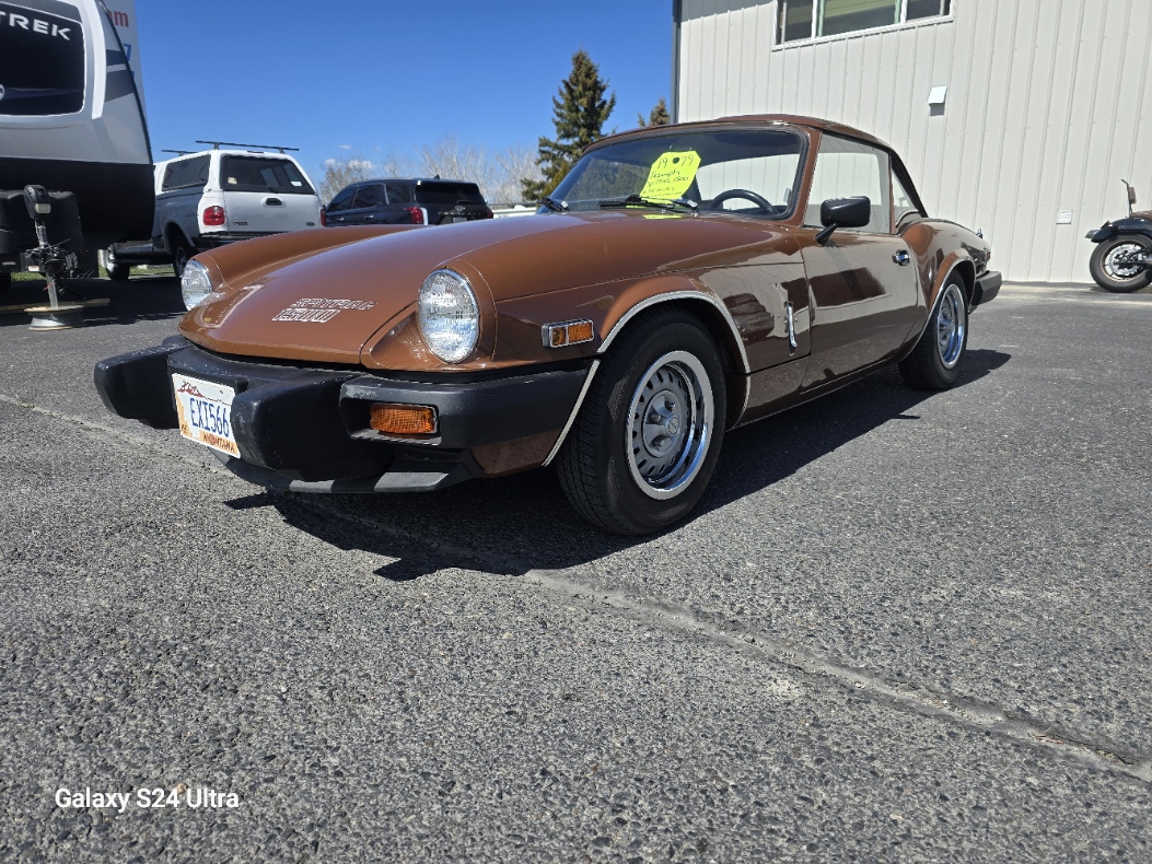 $8995.00 C4613 1493CC INLINE 4CYL 4SPD This is a local car that is very well put together!! The paint is in amazing condition, it runs flawlessly, horn works, radio does not work( probably something simple). This would make someone a great summer time run-about vehicle. Stop by Value Auto Sales or contact Jeff @ 406 459 4777 all fair offers will be considered. The 1979 Triumph Spitfire 1500 is a 2-door convertible equipped with a 1,493 cc inline-four engine, delivering roughly 53–57 hp (US spec) to 71 hp (UK spec) at 5,500 rpm and 82 lb-ft of torque. It features a 4-speed manual transmission, 13-inch wheels, and distinctive rubber bumpers. It boasts a 0-60 mph time of ~13.2 seconds and a top speed around 100 mph.