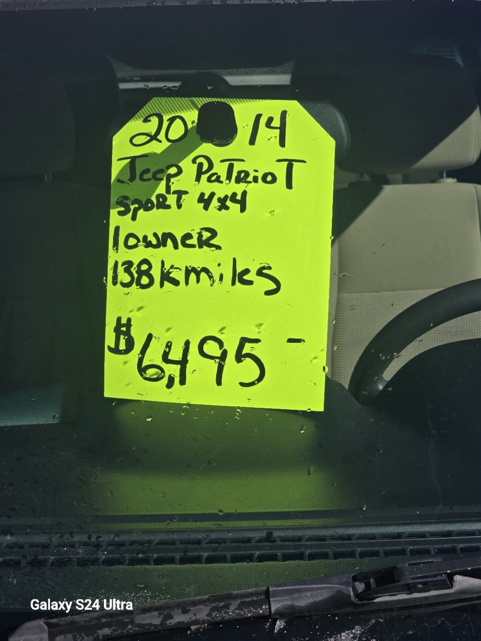 $6495.00 vf4548 1C4NJRBB0ED770799 2014 Jeep Patriot Sport SUV 4D 4x4 138424 automatic 4-Cyl, 2.4 Liter 4x4 172 Horse Power VALUE AUTO SALES 40 W CUSTER AVE HELENA,MT 59602 CONTACT JEFF @ 406 459 4777 The 2014 Jeep Patriot Sport 4x4 typically features a 2.4L, 172-hp inline-4 engine, a 5-speed manual transmission, and all-wheel drive. Key specifications include an overall length of approximately 173.8 inches, a 4-wheel anti-lock brake system with front discs and rear drums, and seating for five passengers. Engine & Powertrain