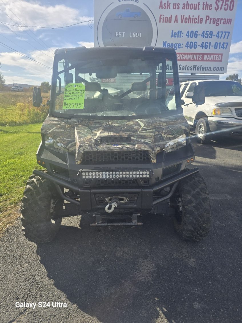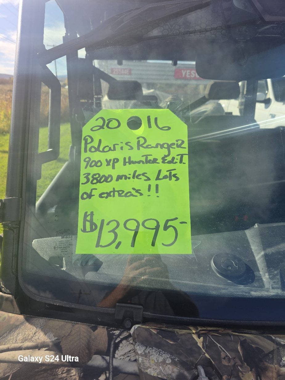 If anyone is looking for a nice SxS, stop by the shop and check this machine out. Or contact Jeff @406 459-4777 $13995.00 2016 Polaris ranger xP 900 crew hunter edition eps, Will come with spare tires, belt, maintenance kits, vinyls doors. Has winch and light bar 3800 miles The 2016 Polaris Ranger Crew XP 900-6 EPS features an 875cc, 4-stroke, twin-cylinder engine, on-demand true AWD, and a 2,000 lb (907.2 kg) towing capacity. Key specs include a 10-gallon (37.9 L) fuel capacity, 1,571 lb (713 kg) dry weight, 10 in (25.4 cm) of front and rear suspension travel, a digital gauge, and 26-inch PXT tires. Engine & Drivetrain